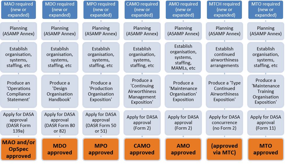 Note: DASA directly authorises certain management personnel within approved organisations. However, those authorisations are considered to be part of the organisational approval process in this chapter, so they are not separately listed here.