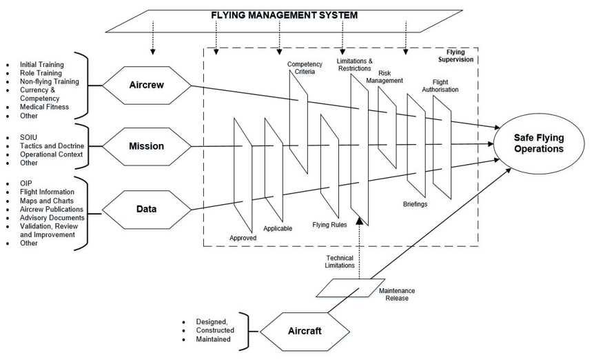 Flying organisations provide local guidance, training, supervision and monitoring of individual aircrew to ensure they are competent and authorised to conduct specific flying operations. To support the performance of this role, Defence flying organisations are required to establish and abide by local management practices, rules, orders and instructions regarding flying operations. They are also required to develop training and qualification requirements appropriate to the operations they conduct. Collectively, such administrative arrangements, or elements, form the organisation’s ‘Flying Management System’. DASR ORO.10 identifies the key elements of an FMS.