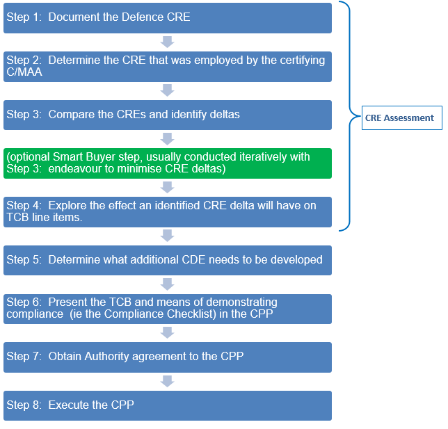 Unsurprisingly, applicants endeavour to leverage prior certification to the maximum practicable extent, rather than develop additional CDE. The onus is on the applicant to compare Defence’s CRE with the prior certified CRE, and draw one of three conclusions for every TCB line item: