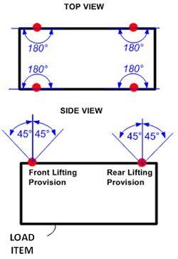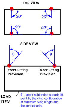 Part of determining a suitable sling configuration initially involves selection of single point, dual point or tandem lifting configurations. Single point lift with four lifting provisions is typically adopted for most EL load items. If dual or tandem lifting configurations are being sought, AMTDU is to be contacted in the first instance. |