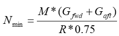 Where this formula results in a value less than four, the minimum number of attachment points is four. Nmin – Minimum number of attachment points M – Load item mass in air transport configuration Gfwd, Gaft – The applicable restraint load factor in the forward and aft directions (items 1.4.1 or 2.2.9) R – Strength Rating of attachment point as per Item 5.1.3 |