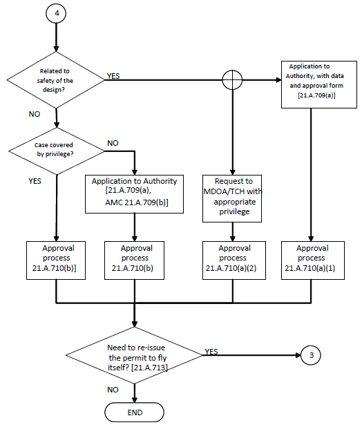 Any change that invalidates the flight conditions or associated substantiation established for the military permit to fly shall be approved in accordance with DASR 21.A.710. When relevant, an application shall be made in accordance with DASR 21.A.709.
