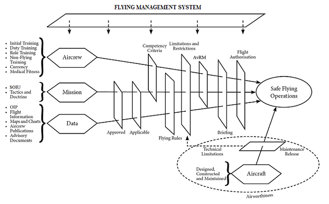 Flying organisations provide local guidance, training, supervision and monitoring of individual aircrew to ensure they are competent and authorised to conduct specific flying operations. To support the performance of this role, Defence flying organisations are required to establish and abide by local management practices, rules, orders and instructions regarding flying operations. They are also required to develop training and qualification requirements appropriate to the operations they conduct. Collectively, such administrative arrangements, or elements, form the organisation’s ‘Flying Management System’. DASR ORO.10 identifies the key elements of an FMS.